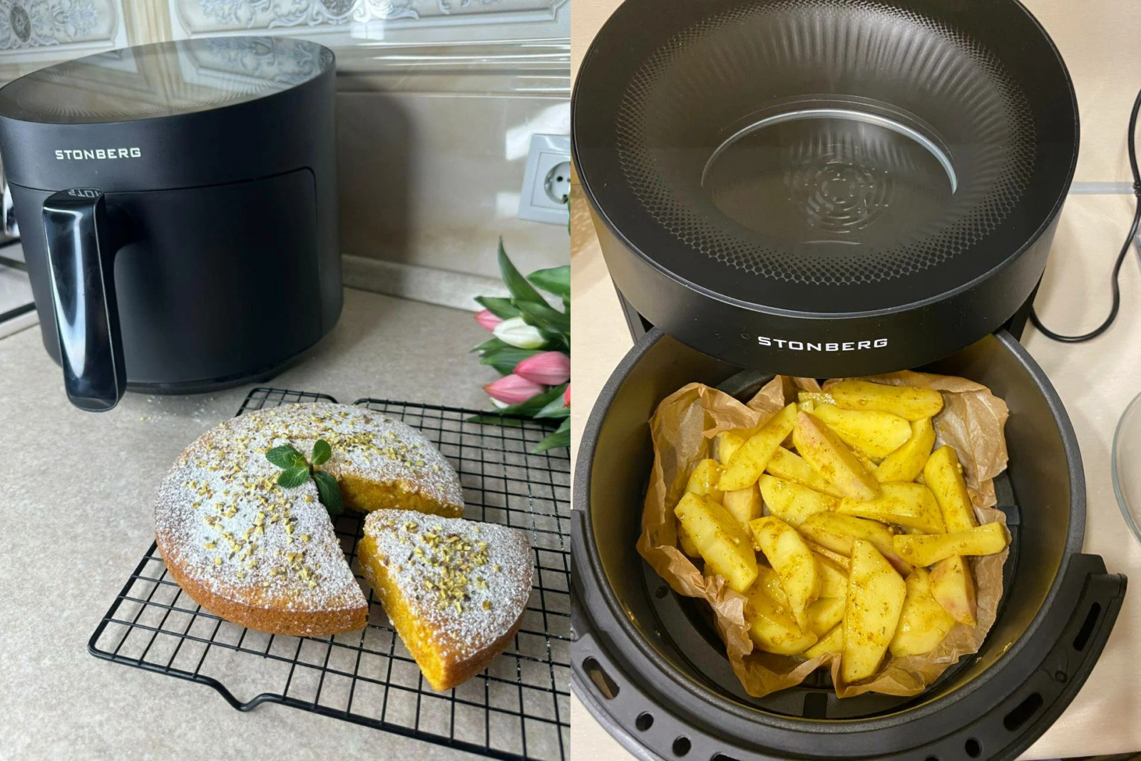Аэрогриль также способен заменить гриль, мультиварку, фритюрницу и СВЧ-печь. Например, вместо громоздкой плиты или духовки можно запечь курицу или картошку во фритюре — и при этом прибор займет минимум места.
