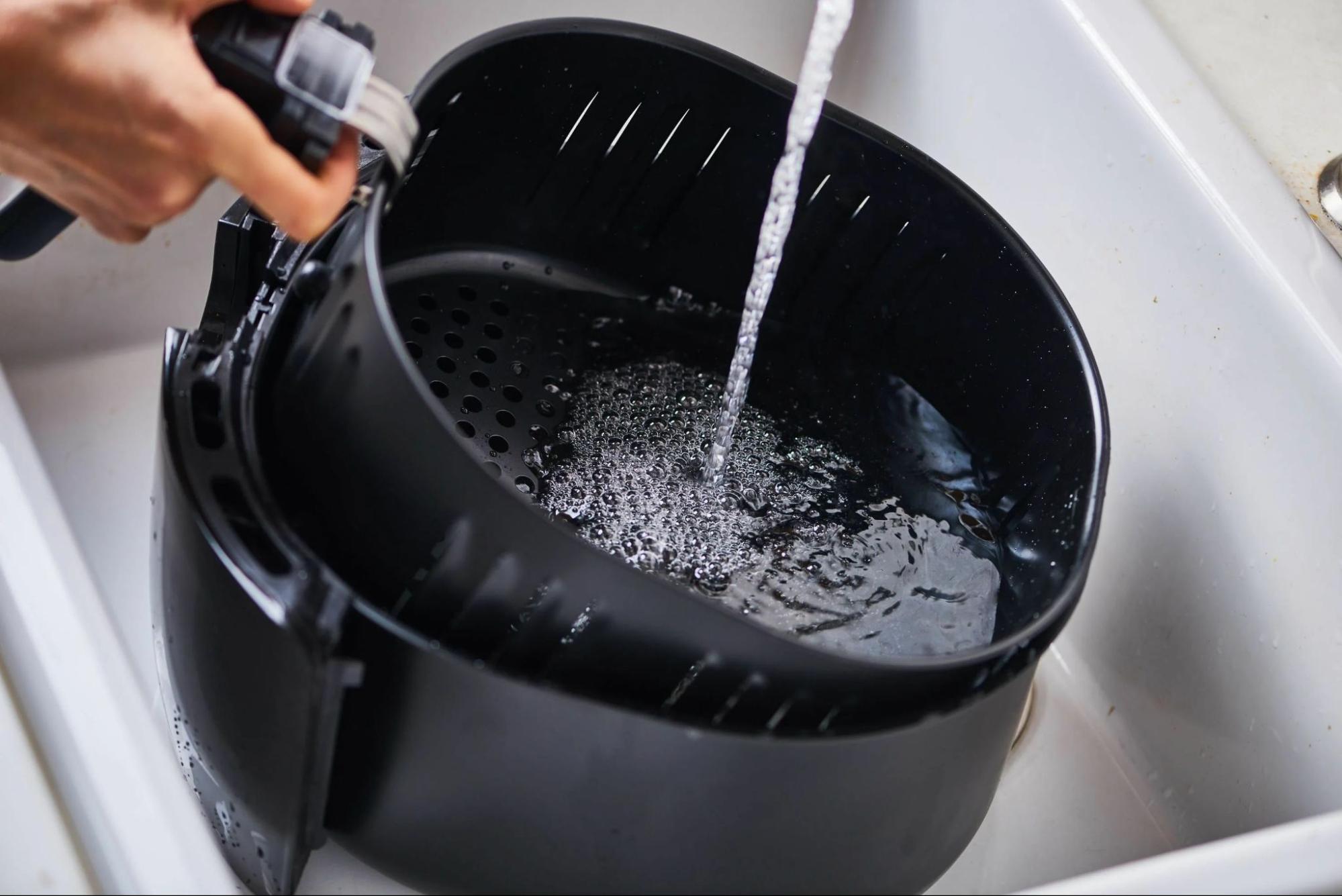 - Не применяйте жёсткие щётки или агрессивные средства: они могут повредить антипригарное покрытие. И хотя многие модели разрешают мыть корзину в ПММ, проще всё-таки промыть их вручную: так чаша прослужит дольше.