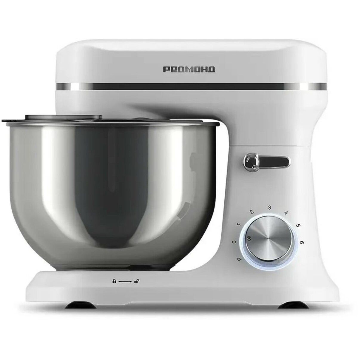 Redmond выпускает и ручные миксеры, и мощные планетарные машины. У большинства моделей стандартный набор насадок — венчик для взбивания и крюк для теста. Но есть и экзотика: например, у RFM-5382 в комплекте есть погружной блендер-насадка, который превращает его в миксер-блендер-измельчитель. Это настоящий «3 в 1» (миксер + блендер + измельчитель) – пригодится и для супа-пюре, и для домашних коктейлей. Качество у Redmond на уровне: у топовой модели FM-602 металлический корпус, мощный мотор на 2000 Вт и сенсорная панель. Многие заметили, что он похож на «дорогой автомобиль» для кухни. Но и спорный момент есть: некоторые считают, что такой монстр — не нужная трата денег, ведь для простых задач достаточно и ручного миксера.