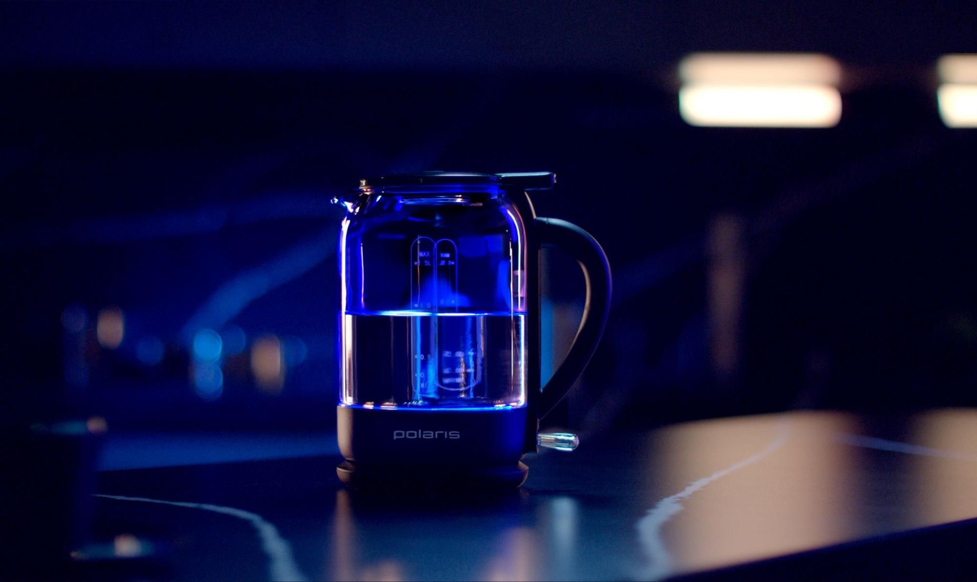 Подсветка и индикатор: стеклянные модели Polaris Brilliant («Brilliant Collection») оснащены внутренней LED-подсветкой и двойной шкалой воды. Это не просто эффект – ночью подсветка помогает не залить больше воды и создаёт уют.