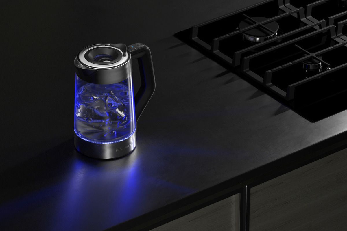 Умный чайник с лаконичным дизайном «как у простого чайника», но с функциями полного «умного дома». Стеклянная колба, LCD-дисплей и подсветка, управление через приложение и голос. 1,7 л, 2200 Вт, режимы 40–100 °C. Как отмечает iXBT, «полноценный обитатель „умного дома“: управлять им можно со смартфона… из любой точки мира».