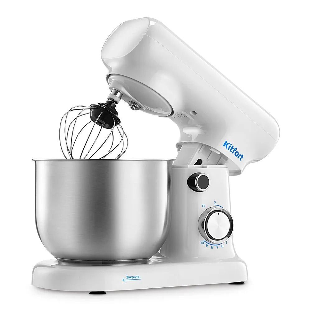 Один из самых популярных стационарных миксеров Kitfort. Мощность 1000 Вт, планетарное вращение насадок – всё как у серьёзного прибора. Чаша из нержавеющей стали на 5 литров легко вместит тесто на большой пирог. Управление механическое: 6 скоростей, плавный старт и импульсный режим. Из личного опыта: когда я готовил пиццу на 4 порции, этот миксер идеально справлялся с тестом и перемешиванием начинки.