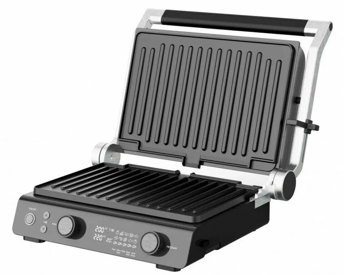DEXP MGL-2000S — недорогой «умный» гриль от сети DNS. Мощность 2100 Вт, 7 автопрограмм приготовления и ручной режим. Съёмные панели, можно мыть после отключения. Есть дисплей и понятное меню. По сути, функционал как у дорогих моделей, но по низкой цене. Цена: ~8 000 ₽.