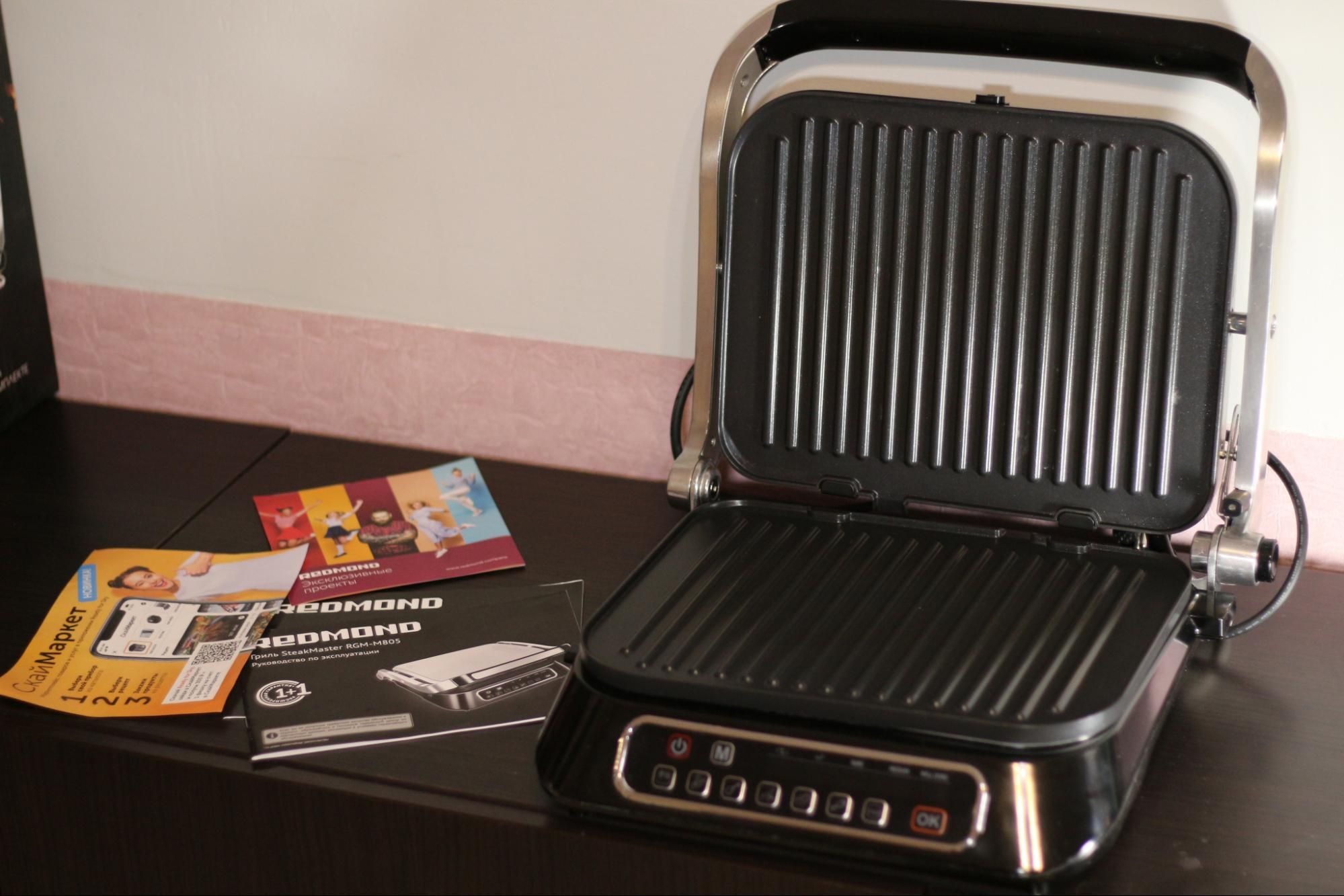 Вывод: Redmond SteakMaster RGM-M805 — функциональный электрический гриль-пресс для дома с элементами «умной» техники. Он отлично подойдёт тем, кто любит разнообразие: сегодня стейки по программе, завтра пирог в ручном режиме. В отзывах многие отмечают удобство приложения программ и равномерность прожарки. Если вы цените бренд Redmond и хотите гриль, который чуть больше чем гриль (почти мини-духовка), эта модель вас не разочарует.
