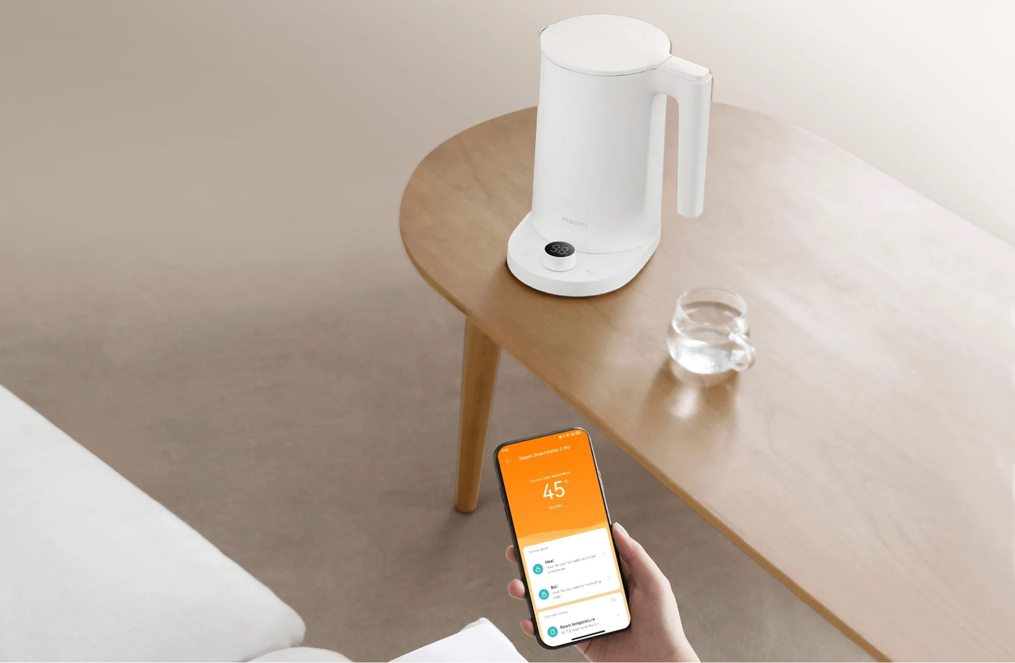 Чайник рассчитан на объём 1,5 литра, выполнен в строгом стиле — доступен в белом и чёрном цветах, легко вписывается в современный интерьер кухни. Устройство поддерживает управление через приложение Mi Home: можно задать температуру нагрева (шаг 1 °C), включить поддержание тепла до 12 часов и выбрать один из четырёх предустановленных режимов (детская смесь, каша, чай, кофе).