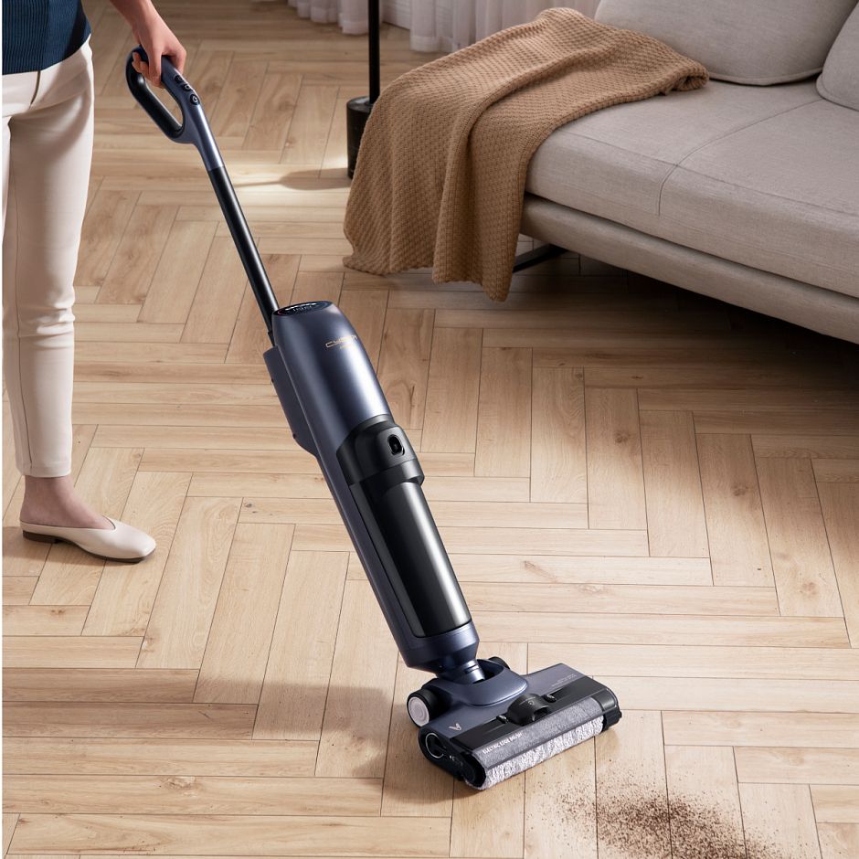Чем они уникальны? Давайте начнем с их конструкции и функционала. Эти пылесосы оснащены двумя резервуарами — для чистой и грязной воды, что позволяет одновременно увлажнять и очищать полы. Удобство их вертикального дизайна заключается в том, что пользоваться устройством можно буквально "одной рукой". Они идеально подходят для уборки как твёрдых покрытий, так и ковров, а их компактный корпус легко помещается даже в небольших квартирах.