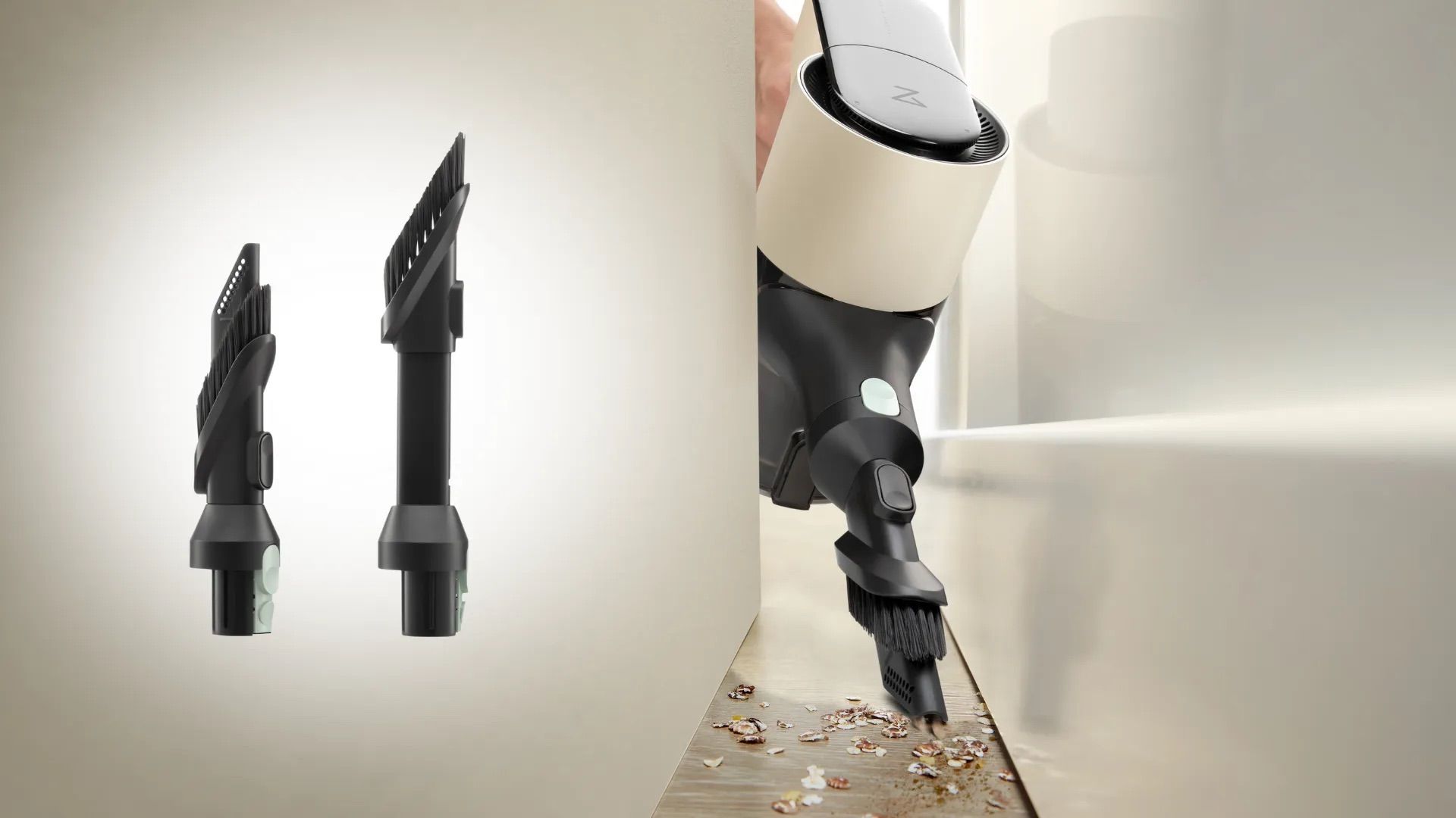 Насадки – это «снаряжение» пылесоса. Наиболее универсальной считается турбощетка с вращающимся роликом: она хорошо справляется с шерстью, крупным мусором и ворсом ковров. Но для бытового дома на всякий случай нужны и другие насадки: узкая щелевая для щелей и углов, насадка-щетка для пыли на мебели, мягкая для деликатных покрытий. Ряд моделей даже имеет гибкий удлинитель или «сгибающийся переходник», чтобы добираться под кроватью и диваном удобно.