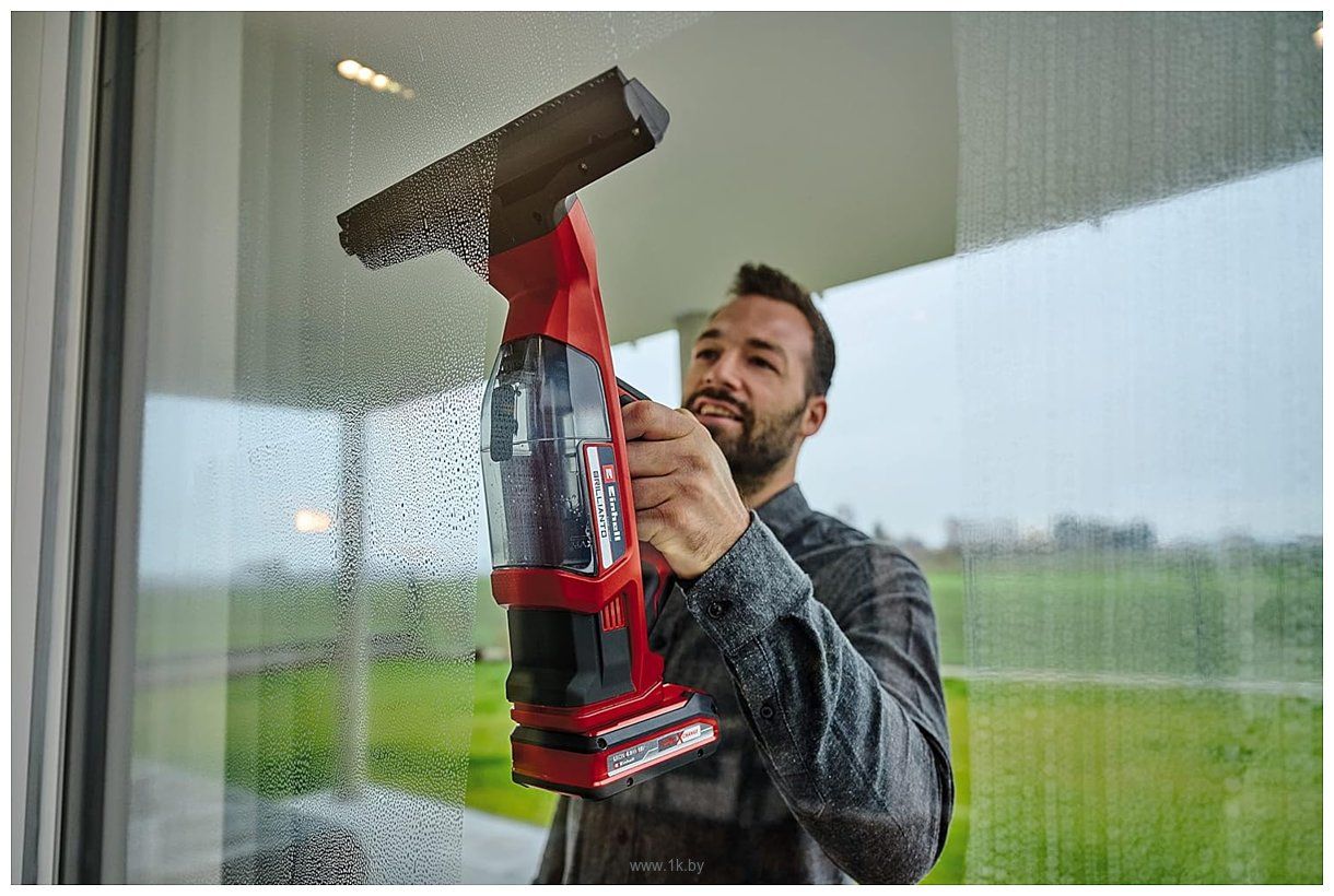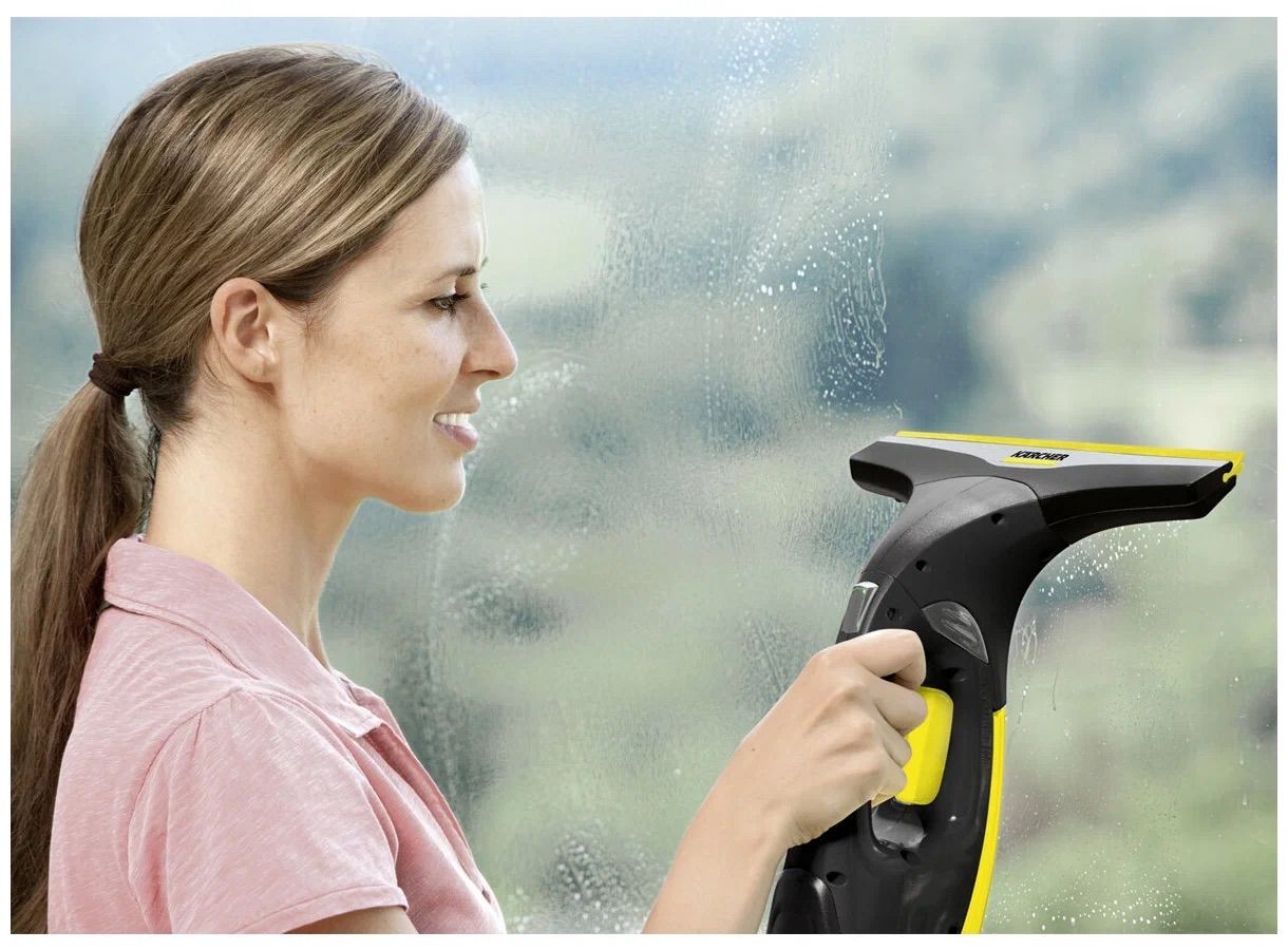 Этот тип устройств представляет собой ручной электрический очиститель для стекол. Конструкция обычно включает резиновую насадку-скребок (стяжку), соединенную с небольшим пылесосом и резервуаром. Принцип работы: вы распыляете на окно воду или моющее средство (вручную или некоторые модели имеют встроенный распылитель), затем проводите по стеклу прибором – резиновый скребок сгоняет воду, а вакуумный мотор сразу всасывает грязную жидкость в резервуар. В результате стекло остается относительно сухим и без разводов, а все стекающее собирается в емкость, не капая на подоконник. Примеры таких устройств – Karcher WV 2/5 и аналоги (Bosch GlassVAC, Kitfort и др.).