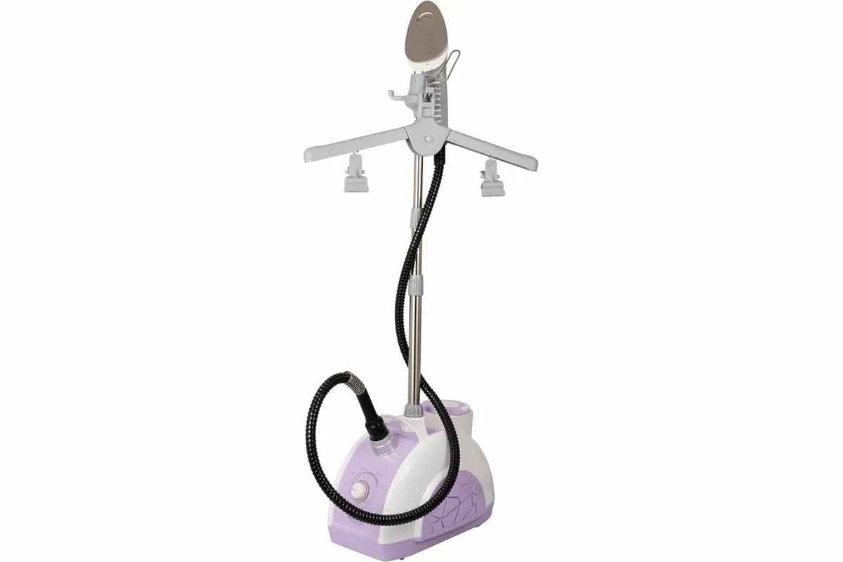 Съемный бак объемом 1,5 л дает до ~40 минут работы без остановки – внушительный показатель для недорогой модели. Высота стойки регулируется (до ~127 см), в комплекте есть удобная вешалка-плечики и насадки (щетка для ворса, защитная варежка), что упрощает процесс для новичков.