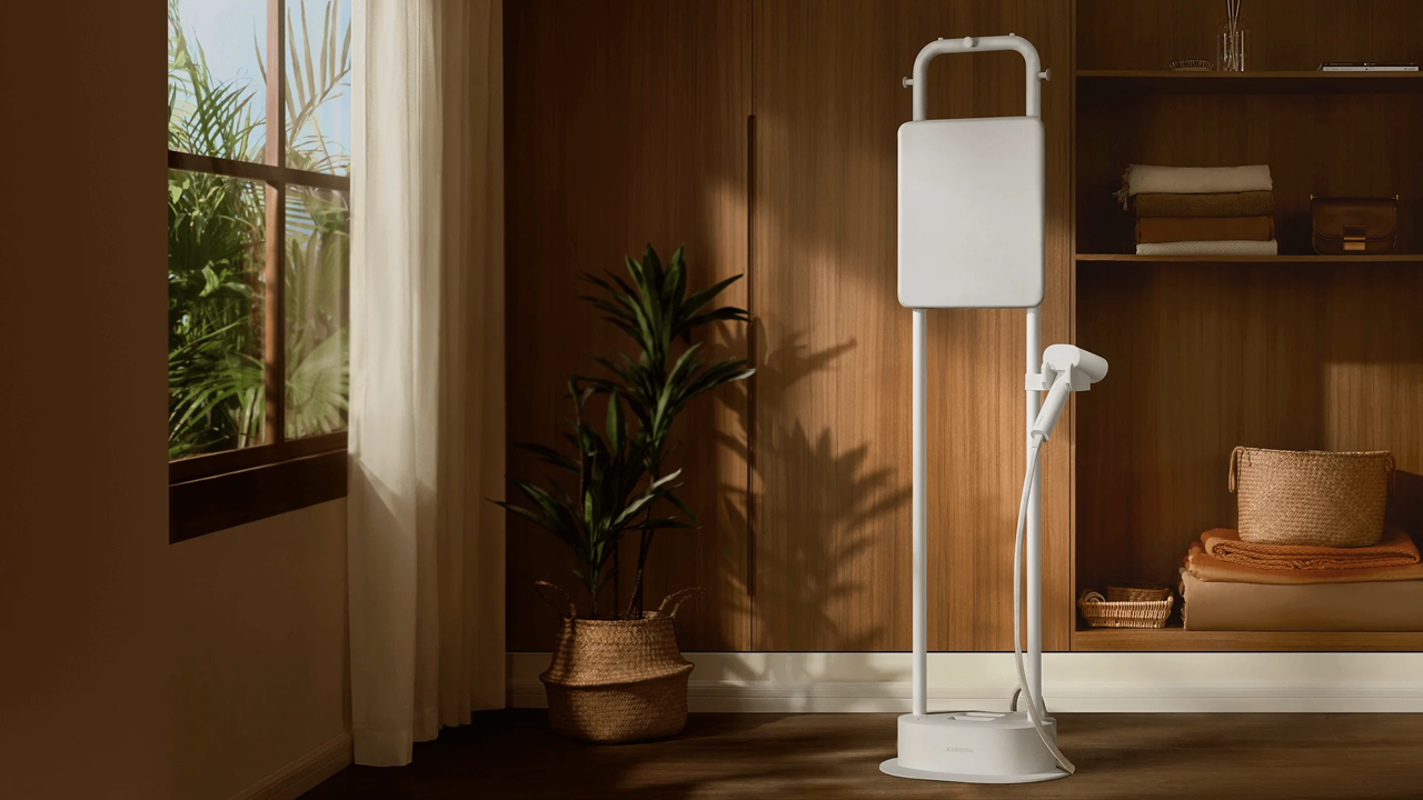 - Xiaomi Standing Garment Steamer – Бак 2,3 л, стильная конструкция «2 в 1» (стойка + парогенератор); отпаривает плотные ткани, мгновенный нагрев за 30 с.