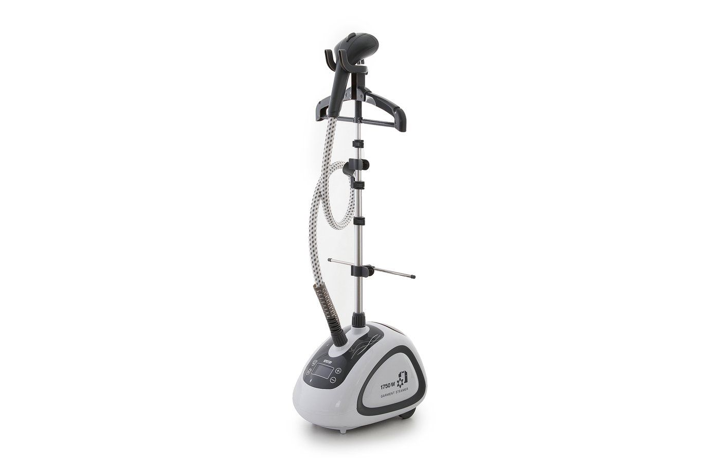 Это универсальный отпариватель напольного типа, рассчитанный на интенсивную работу без частых перерывов. Он выходит на рабочую мощность примерно за 38 секунд, после чего стабильно выдает горячий пар ~98 °C с производительностью до 85 г/мин. Такая высокая подача пара фактически дает эффект «паровского удара», разглаживая даже самые неподатливые складки.
