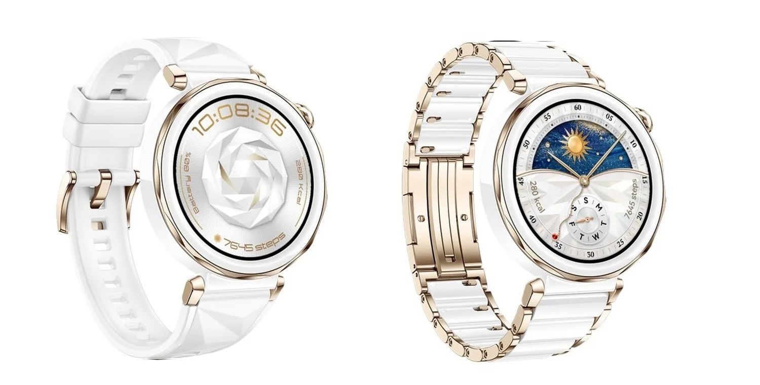 Для дам, которые хотят по-настоящему премиальные умные часы, Huawei выпустила женскую версию Watch GT 5 Pro с диаметром 42 мм. Это часы, которые на запястье выглядят как дорогой аксессуар haute couture, но при этом обладают всеми топовыми функциями флагмана. Корпус выполнен из белой нанокристаллической керамики – материал не только красивый (переливается перламутром), но и прочный, устойчивый к царапинам. По бокам и основа корпуса – из лёгкого титана цвета розового золота, создавая эффектный контраст. Циферблат окружён изящным золотистым безелем. Представьте, вы надеваете эти часы на деловой ужин – они привлекают взгляды не меньше, чем стильное колье! Однако красота – не единственное их достоинство.