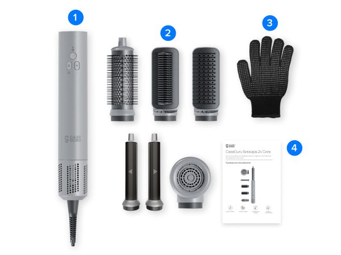 Комплектация 1. Фен-мультистайлер CaseGuru Биокарв 24 Силк