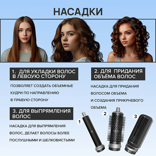 Насадка для сушки волос Высушивает волосы и подготавливает их к укладке.