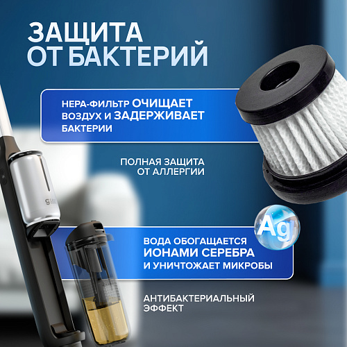 Авиационные технологии Мощный HEPA-фильтр, как в современных авиалайнерах, удерживает мельчайшие частицы пыли и микробов не только с пола, но и из воздуха.
