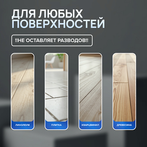 Вечное сияние чистого пола Подходит для уборки ЛЮБЫХ помещений: продлевает срок службы напольного покрытия и препятствует появлению глубоких загрязнений. Полирует полы и придаёт им блеск. Никаких луж, царапин и вздутия на полах.