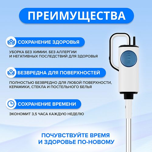 Сохраняет здоровье Самый экологичный способ навести стерильную чистоту в комнате. Без аллергии и без негативных последствий для здоровья от использования бытовых химикатов.