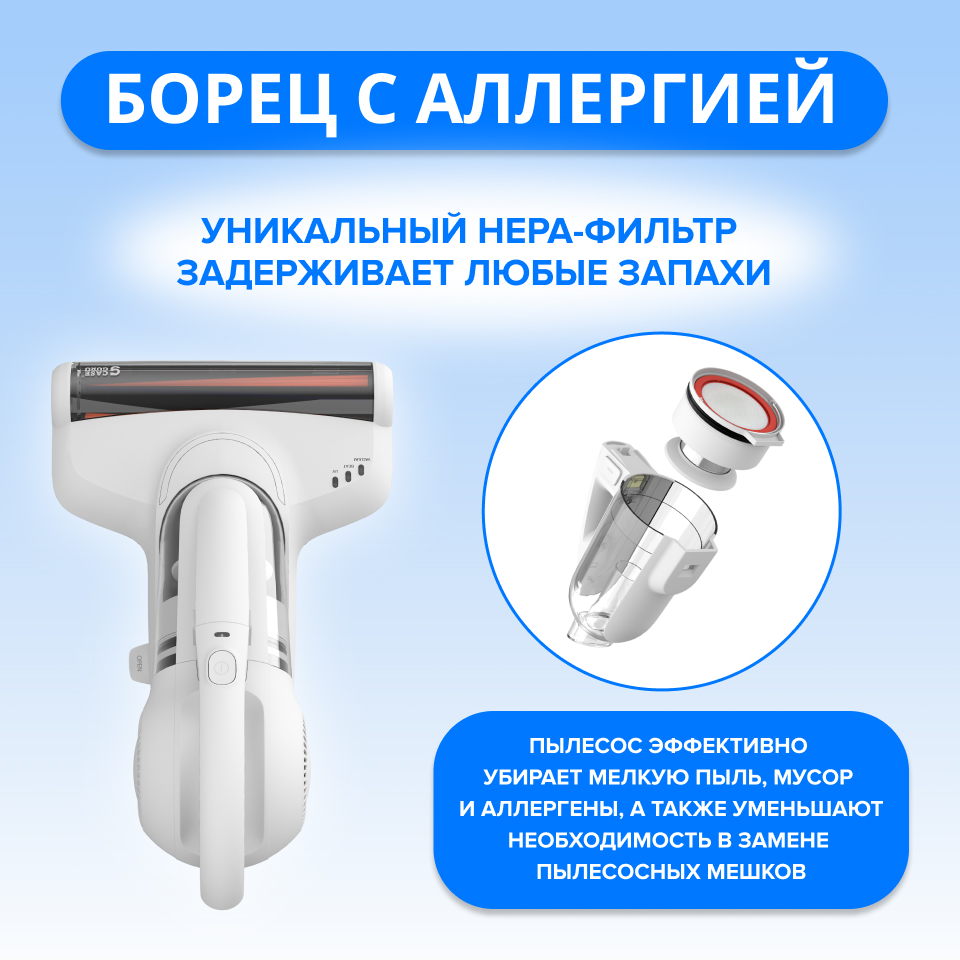 Убирает везде Всасывает пыль и шерсть животных во всей квартире. Очищает матрасы, подушки, одеяла и детские игрушки.