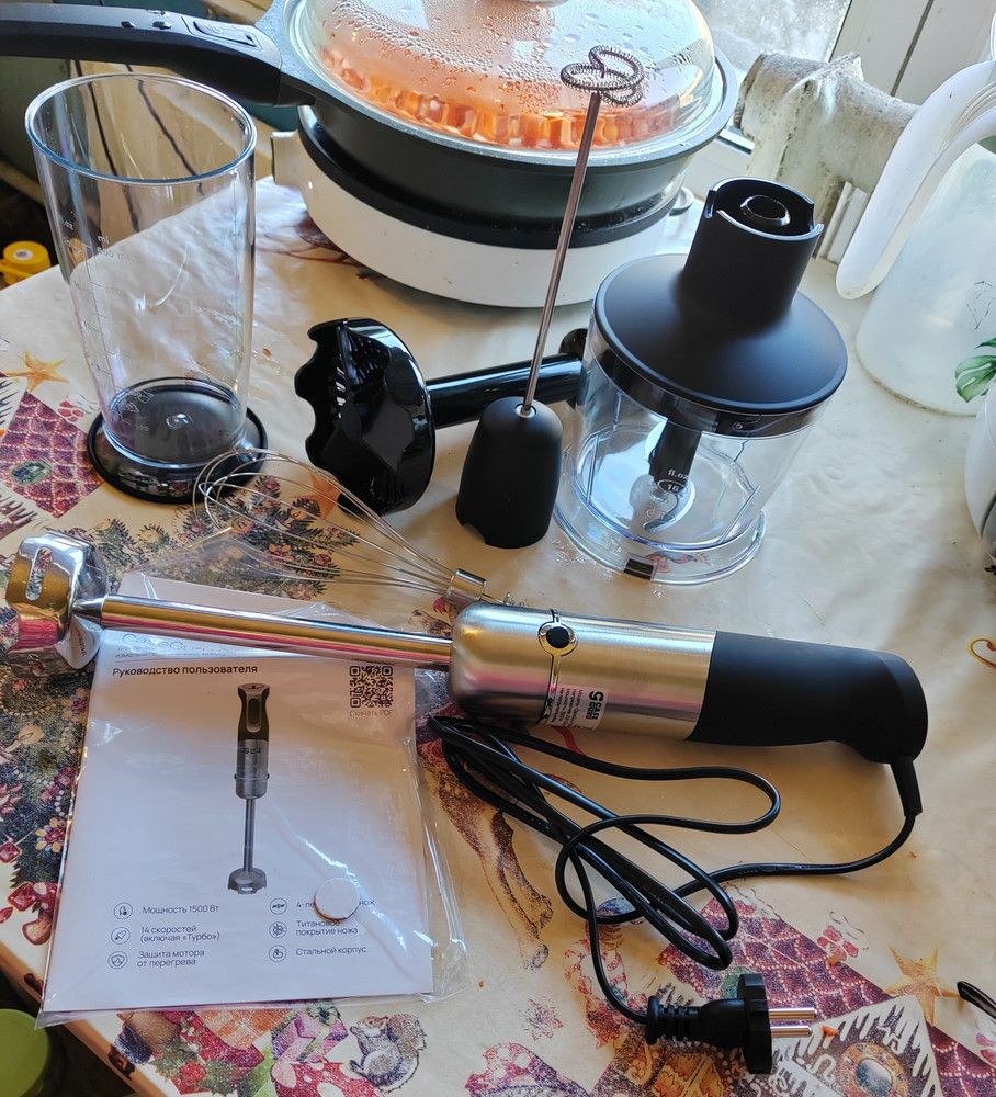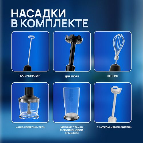 Погружной блендер 5 в 1: измельчитель, блендер, миксер, капучинатор, насадка для пюре