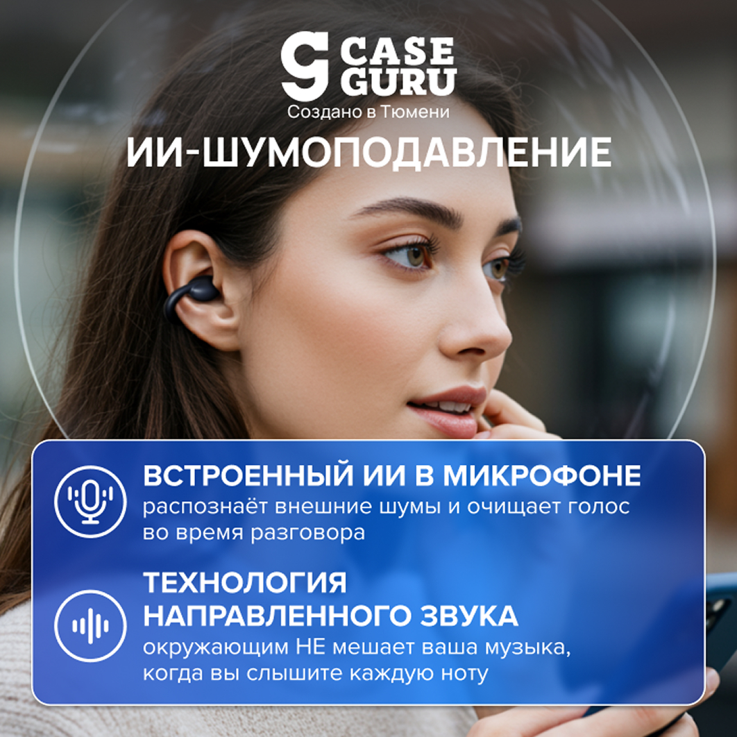 Безопаснее обычных наушников Конструкция открытого типа оpen-ear. Для прогулок и пробежек: не пропустите сигнал авто или крик самокатчика. Для родителей: не пропустите звонок в дверь, плач ребёнка или таймер стиральной машины. Для водителей: можно слушать музыку и быть в курсе происходящего вокруг.