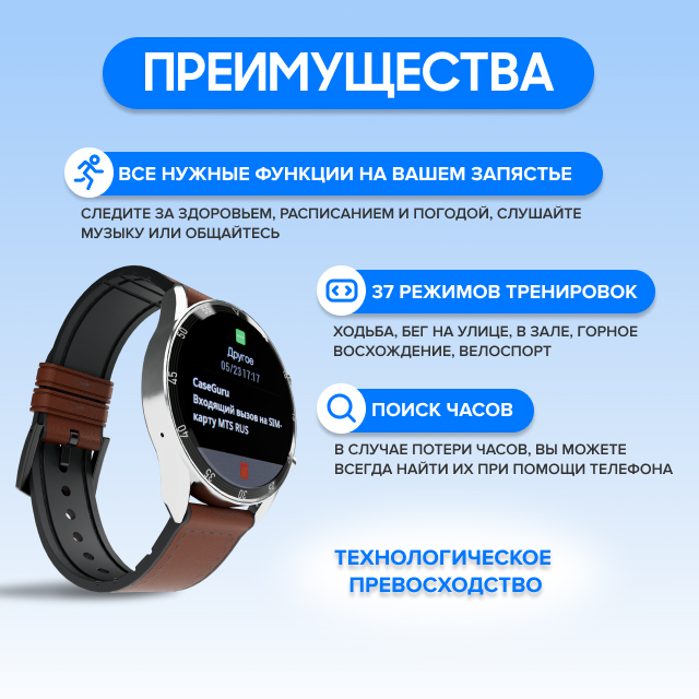 Мобильное приложение на Android и iOS Удобные функции, которые всегда нужны: поиск часов и даже телефона, настройка уведомлений и вызовов.