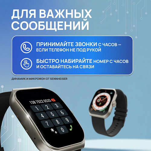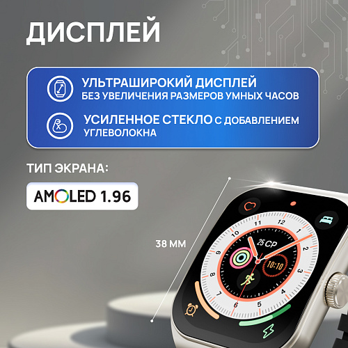 Ультраширокий дисплей Больше полезной площади дисплея БЕЗ увеличения размеров самих умных часов.