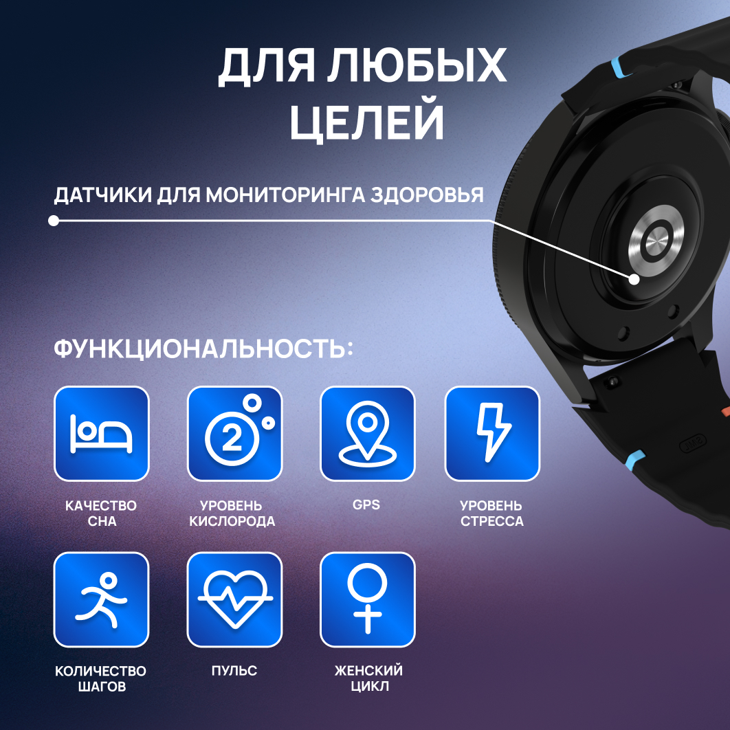Все, что вам нужно, без переплат Те же фишки и характеристики, что и у распиаренных смарт-часов, но без переплаты за международный маркетинг, бренд и параллельный импорт. Все функции работают без ограничений в России — никаких проблем с подключением и настройками.