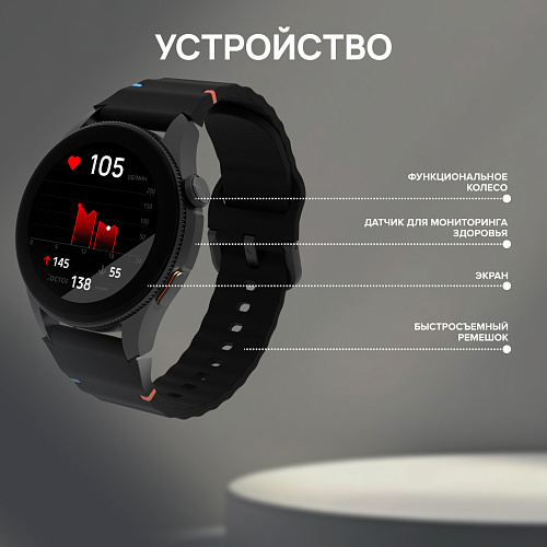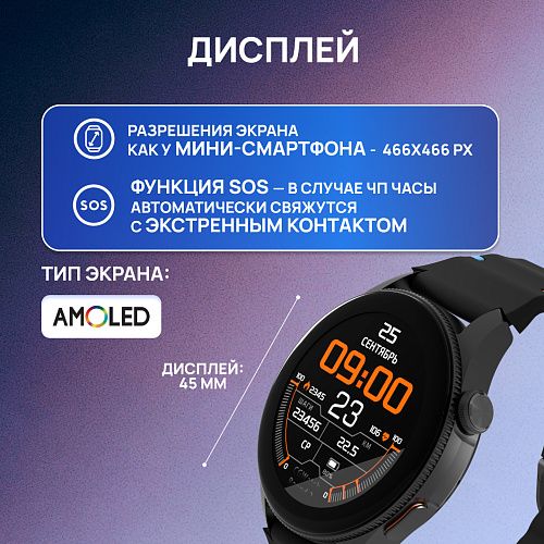 Яркий AMOLED-дисплей Сочный и четкий AMOLED-дисплей с разрешением 466х466 px как у мини-смартфона. Все данные на экране видны даже под ярким солнцем, а картинка всегда остается яркой и контрастной.